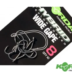 De Wide Gape haak is gebaseerd op het Klassieke Maruta Kinryu model. De punt is iets naar binnen gebogen, hierdoor zal deze haak niet alleen snel prikken maar ook een solide houvast bieden tijdens de dril. Dit in combinatie met een ultra scherpe punt, vormen dit unieke haakmodel. Het oog van de haak is 15 graden naar binnen gebogen, hierdoor zal de haak gemakkelijk naar de onderlip willen draaien. Dit line aligner effect kan nog versterkt worden door een stukje shrink tube te gebruiken over het oog van de haak. De Wide Gape is een klassiek model die vandaag de dag door vele topvissers gebruikt wordt. Deze haak heeft al vele grote vissen op zijn naam staan. Ook Engelands grootste karper genaamd Two Tone is gevangen op de deze haak.